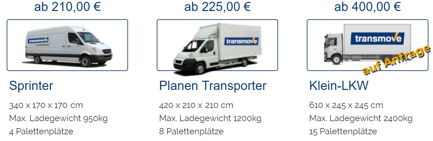 Preis und Verfügbarkeit sofort – Laden innerhalb von 1- 2 Stunden überall in Europa*) damit können Sie rechnen. Tag für Tag, Stunde für Stunde. Direktfahrten und Kurierfahrten, insbesondere Planensprinter, hinten und seitlich beladbar, Ladefläche L/B/H 420 (- 480) x 220 x 220 ( -250) cm, Nutzlast 900 – 1200 kg) kommen hier zum Einsatz.